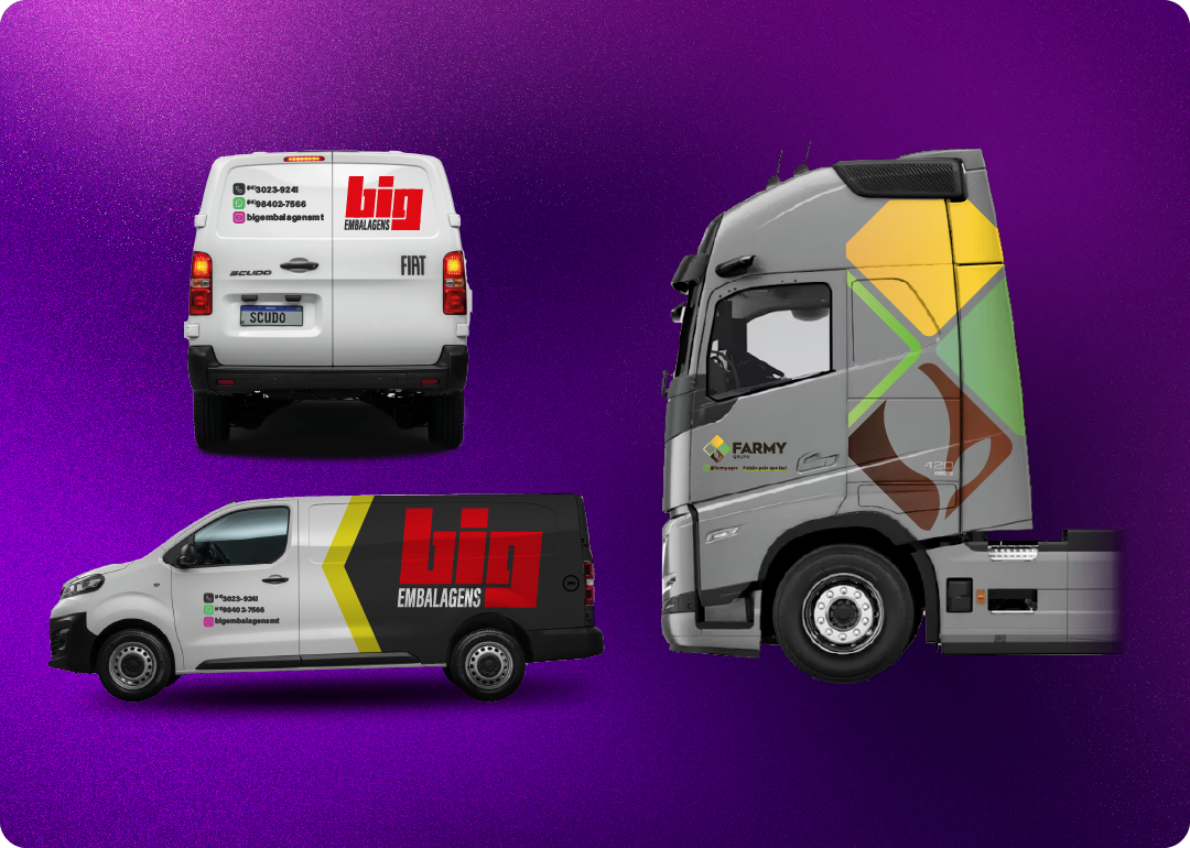 Design especializado para frotas, incluindo veículos leves, caminhões e vans. Adaptação técnica da marca para diferentes modelos